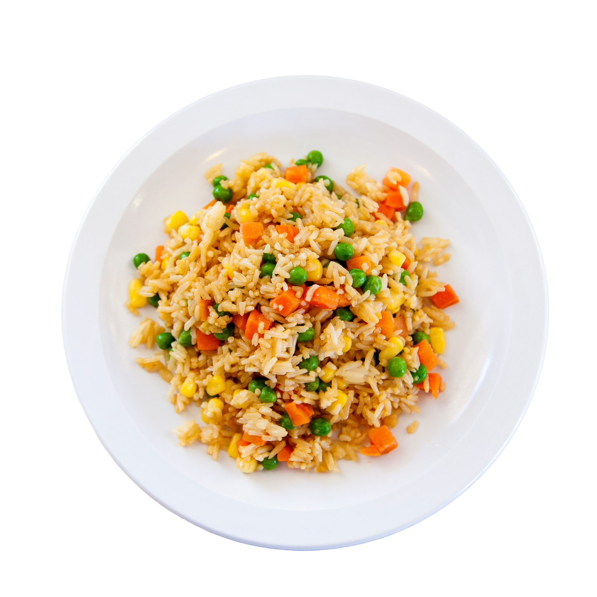 Ingredients: jasmine rice, corn, carrots, peas, soy sauce, pepper, sugar.